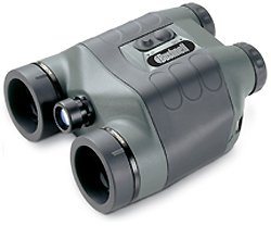 Bushnell® Night Vision with 2.5 x 42 Magnification X Obj Lens and Infrared IlluminatorBushnell® Night Vision with 2.5 x 42 Magnification X Obj Lens and Infrared Illuminator Detail : No telling how you'll react when faced with what lurks after dark, but with Bushnell® Night Vision, time will never again dictate your hours of operation. These optics turn night into day with built-in infrared illuminators and advanced light-gathering technology. The entire lineup is perfect for camping, caving, wildlife observation, surveillance - any time or place you think you're ready. Features: Exceptionally comfortable to use during long periods of observation and viewing. Lightweight, extra-long viewing range and a wide field of view makes these binoculars ideal for law enforcement, night navigation and wildlife surveillance. Night Vision Uses: - Scouting game - Security and surveillance - Camping fun / Exploring caves - Nighttime navigation - Night fishing and boating - Wildlife observation - Search and rescue Specifications: - Magnification X Obj Lens: 2.5 x 42 - Tripod Mount: Yes - Field of View (ft@1000 yds / m@1000m): 94 / 31 - Infrared Illuminator: Yes (Built-In) - Weight (oz/g): 28 / 794 - Battery Type: AA (2) - Size (in / mm): 6.5 x 6.3 x 3 165 x 160 x 76 - Viewing Range (ft. / m): 4-600 / 1.2-183